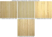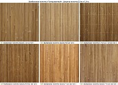 Цветовую гамму бамбуковых полотен можно условно разделить на следующие группы: венге (тёмное); натуральное (светлое); тонированное (коньячной оттенок), фисташковое (зеленое); пепельное (состаренный эффект).
