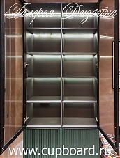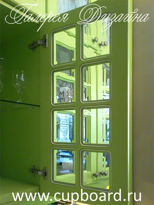 Фасады мы можем сделать любые – из шпонированного МДФ, покрытого пленкой или эмалью, деревянные, окрашенные в различные цвета, либо зеркальные, в том числе с нанесением узоров.