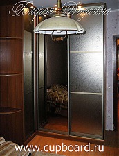 Изготавливая угловые шкафы по индивидуальным размерам, мы предлагаем клиентам различные материалы: натуральную древесину, МДФ с покрытиями шпон, пленка, эмаль, ламинированная ДСП, применяемые для изготовления корпуса и полок. Для фасадов можно выбрать МДФ, ДСП, крашеное стекло, зеркала с изображениями, нанесенными методом пескоструйной обработки, фьюзинга, фотопечати. Встроенный угловой шкаф-купе на заказ с оригинальными зеркальными фасадами – отличное решение для небольших помещений, он визуально расширит пространство и придаст изюминку интерьеру. Дополнительно можно установить подсветку.